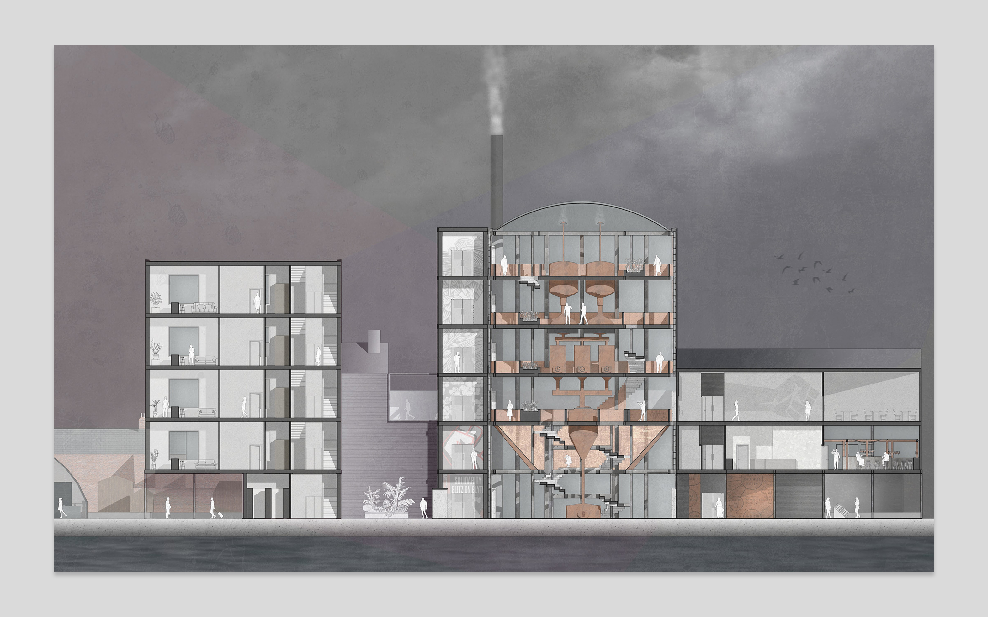 Industrial forms from the surrounding area are reimagined into an immersive brewing experience, guiding visitors through spaces shaped by machinery and process, and inviting them to engage with the craft from start to finish.